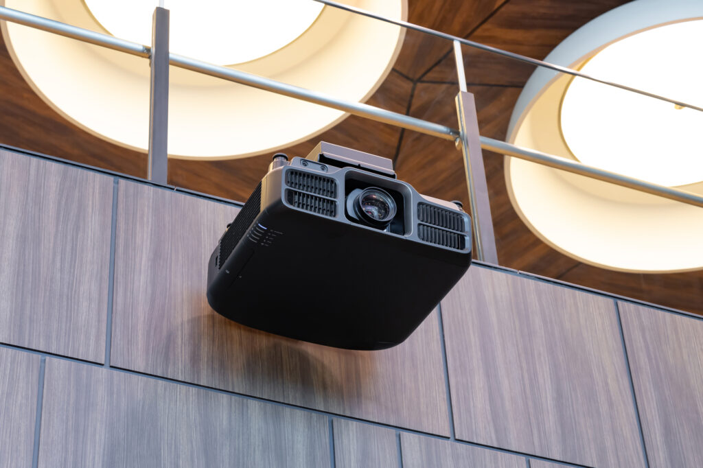 プロジェクターを天井に吊り下げて設置する場合、天井にしっかり固定するだけでなく、左右や上下の角度を調整することが可能です。これにより、投影先のスクリーンや壁に合わせた最適な映像配置が実現できます。さらに、天吊り設置は天井があればほぼどこでも対応でき、スペースを有効活用する点で大きなメリットがあります。ただし、天井に配線を通す必要があるため、専門的な知識と技術が求められ、個人での設置は難しい作業となります。広島配線工事.comでは、お客様のご要望や施設の構造に応じて、最適な位置にプロジェクターを天吊りで設置する工事を承っています。