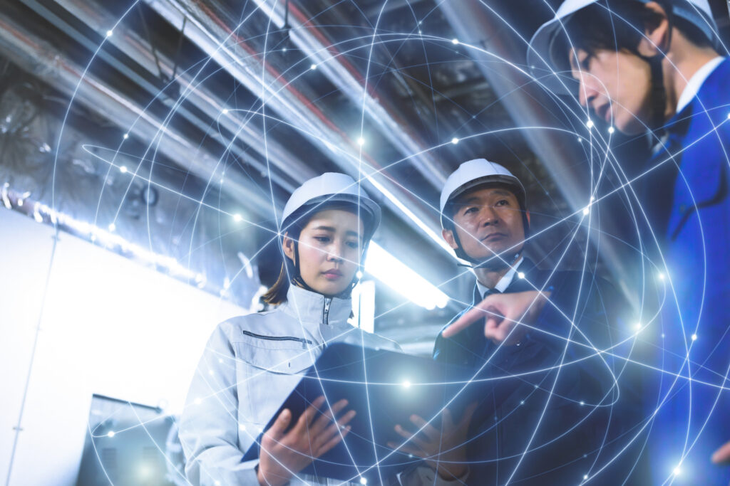 有線LANや無線LANを通じて、各機械や設備をネットワークに接続することで、生産現場の様々なデータがリアルタイムに収集・分析できるようになり、機器の遠隔制御や稼働状況の監視も可能になります。